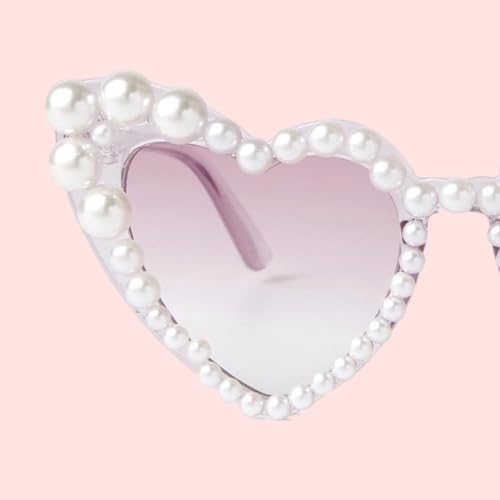 • Heart Sunglasses with Pearl–- Try to See the World Through Heart Shaped Cat eye Sun Glasses, Decorated with White Artificial Pearls, Which is very cute and Lovely, White Pink, Blue Hot Pink Frame With Tint Lens