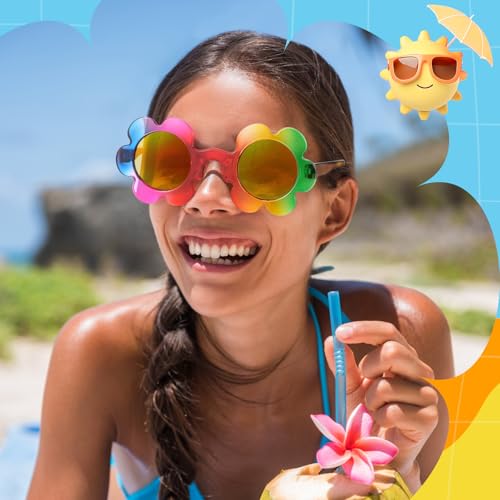 Saillong 10 Pairs Adult Flower Sunglasses 5.7 Inch Women Round Flower Glasses Cute Outdoor Summer Colorful Eyewear for Women Men Beach Pool Party Favor Supplies 4