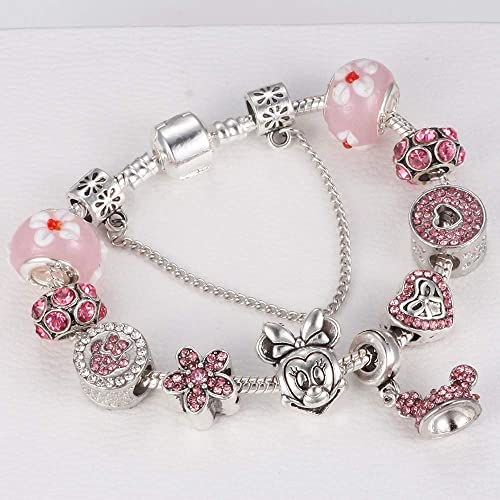 Cartoon Mouse Theme Pink Charms Bracelet, Fits Pandora, Womens DIY Costume Jewelry 1