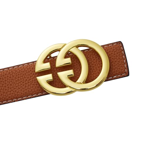• Reversible Leather Belt: Women Reversible Leather Belt with two colors:black and brown. This women reversible leather belt width is 1.37"/3.5cm, it is easy to go through most pant loops. well-made to withstand daily wear.The heavy duty gold buckle adds texture to your outfit!