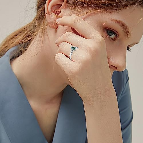 Aihpos Natural Moss Agate Ring Genuine 925 Sterling Silver Oval Cut Green Agate Engagement Ring For Women Branch Statement Ring Promise Wedding Ring 5
