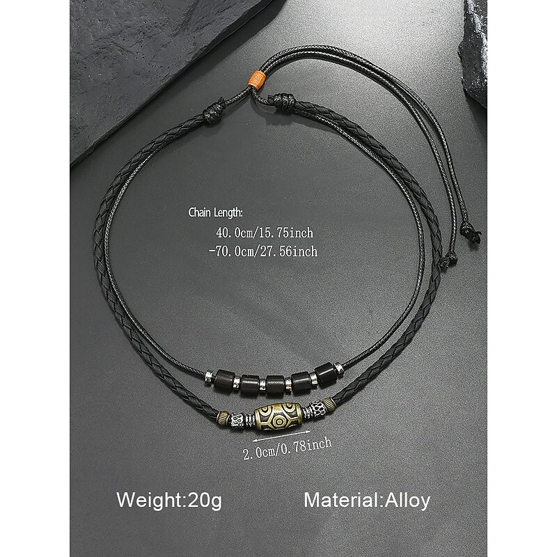 More information about Men's Braided Leather Pendant Necklace Set – Boho Tribal Style with Alloy & Wooden Beads for Casual Wear, Festivals & Travel