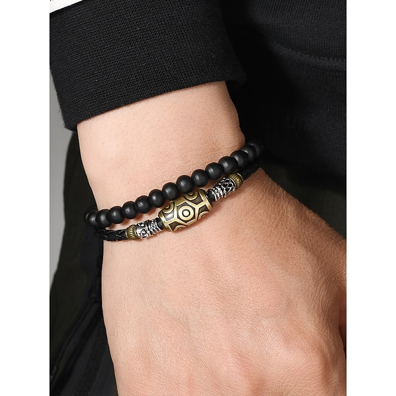 Men's Braided Leather Pendant Necklace Set – Boho Tribal Style with Alloy & Wooden Beads for Casual Wear, Festivals & Travel 1