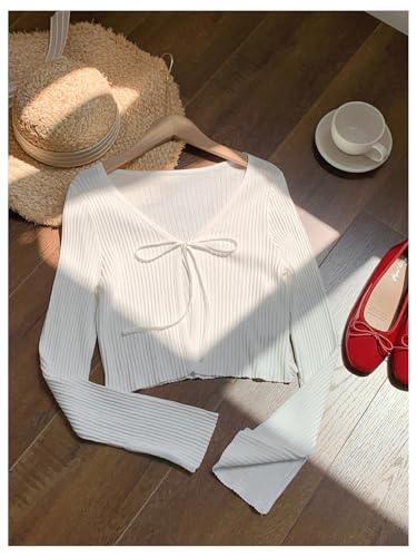 HOT ! Floerns Women's Long Sleeve Lightweight Cropped Cardigan Sweaters V Neck Bow Tie Front Shrug Sweater