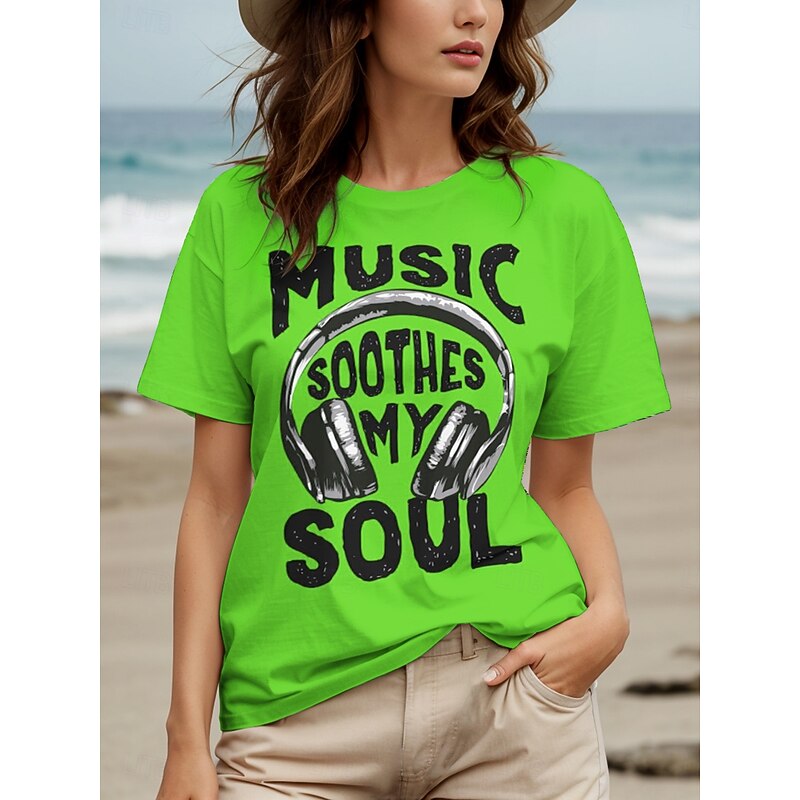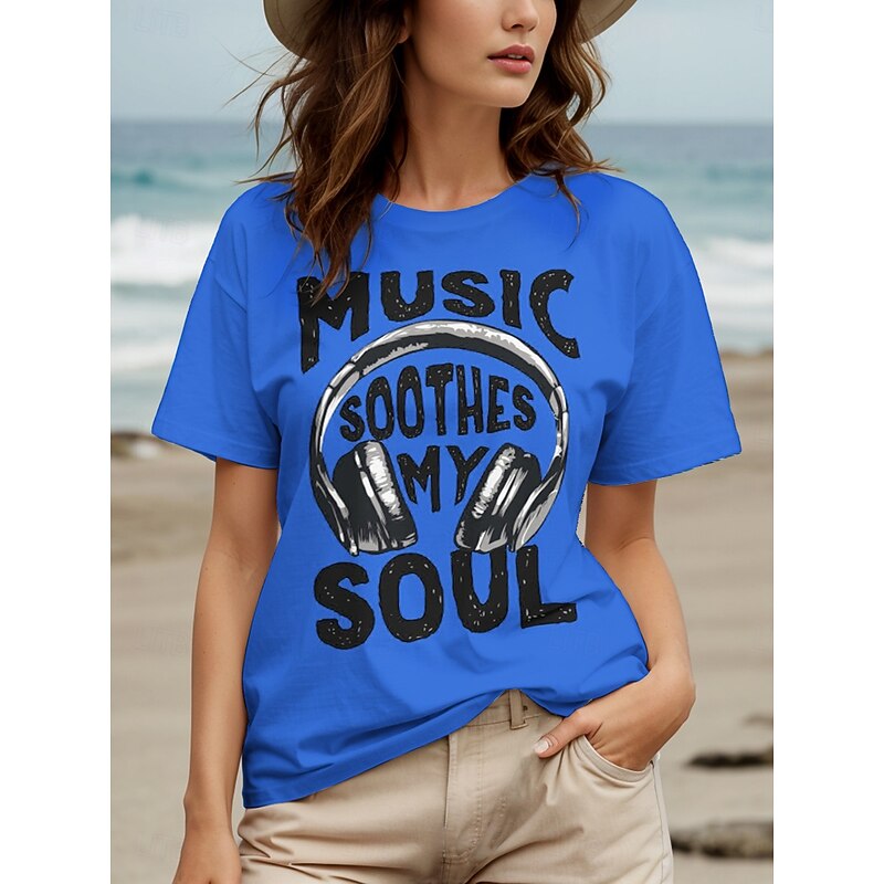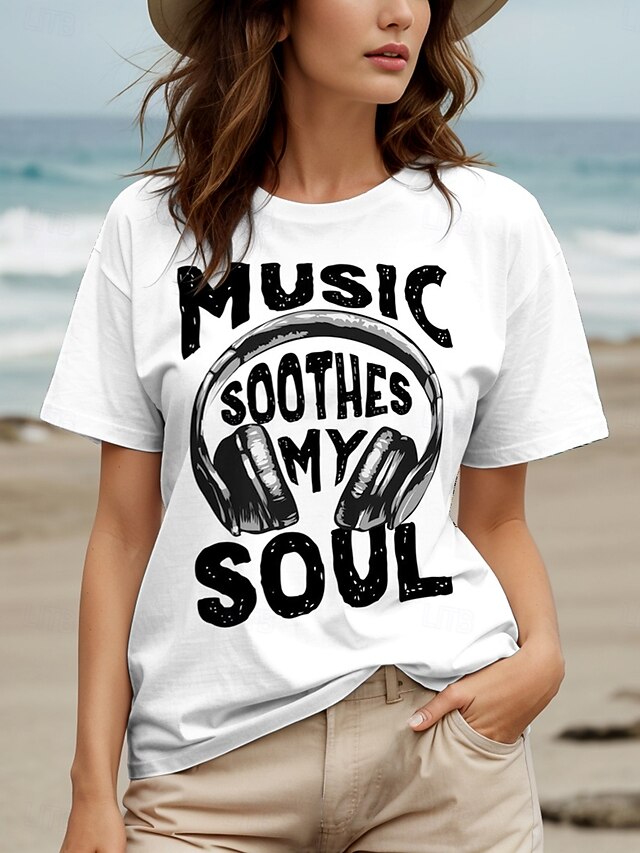 Music Festival Women's T Shirt Graphic Letter Vintage Stylish Classic Short Sleeve Crew Neck Round Neck Regular Tops Daily Weekend Print Black White Yellow Red Blue Summer Spring 2