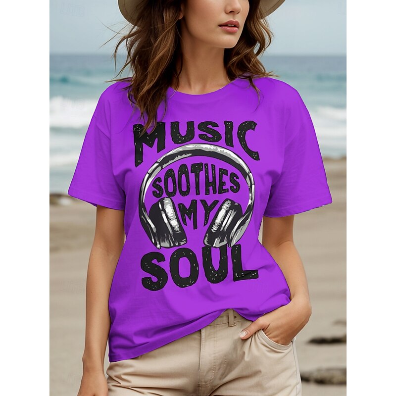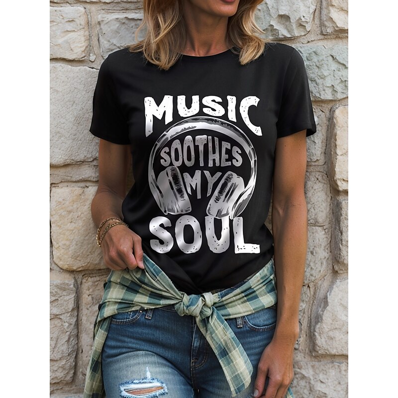 HOT ! Music Festival Women's T Shirt Graphic Letter Vintage Stylish Classic Short Sleeve Crew Neck Round Neck Regular Tops Daily Weekend Print Black White Yellow Red Blue Summer Spring