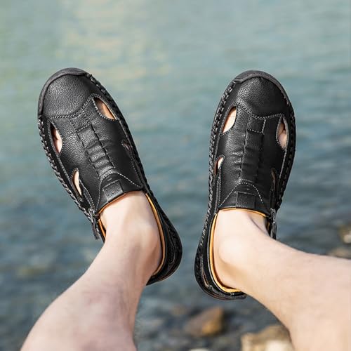Men's Summer Slip On Leather Casual Shoes,Vintage Comfy Hand-Stitching Zipper Driving Walking Loafers Fashion Sneakers 7