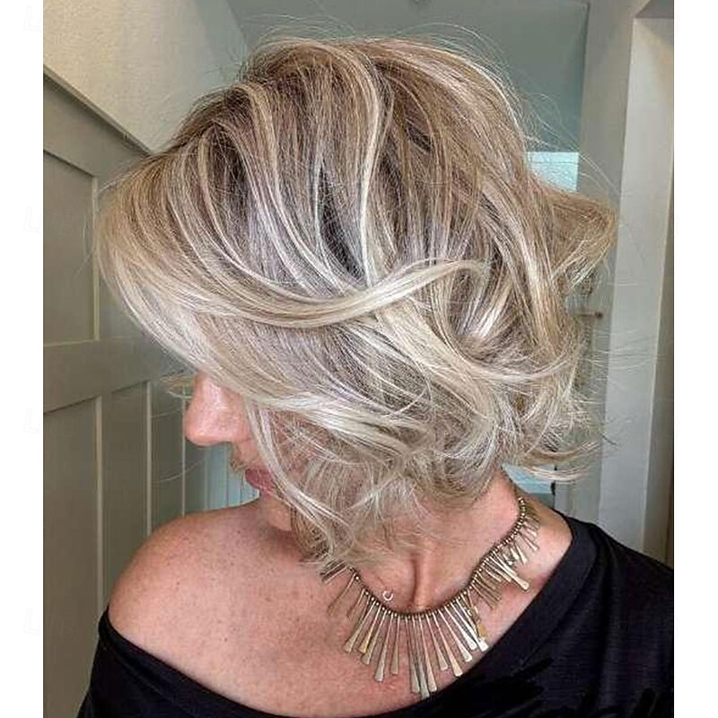 $23.99 - Women's Short Layered Blonde Bob Wig with Dark Roots – Synthetic Heat-Resistant Hair for Everyday, Cosplay & Party 2025. Shop for cheap Older Wigs online? Buy at lightinthebox.com on sale today!