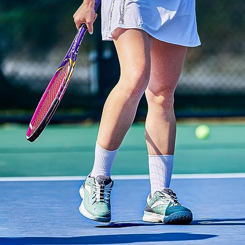 • OUTSOLES: durable dual density EVA material and anti-torsion TPU rubber act as shock absorbers and enhance agility, allowing you to play your best on the tennis court. The enhanced non-slip design enables you to walk and play tennis freely on all kinds of surfaces.