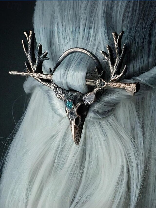 $9.99 - Women's Gothic Antler Hair Stick Clip – Vintage Alloy Deer Skull Hairpin with Blue Stone for Halloween Parties, Cosplay and Retro Occasions 2025. Shop for cheap Halloween Accessories online? Buy at lightinthebox.com on sale today!