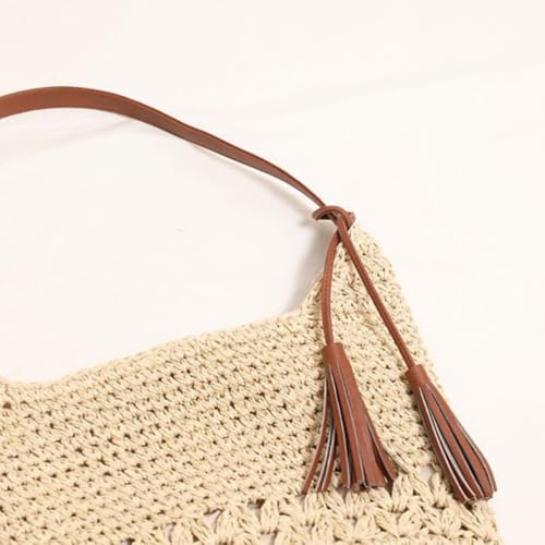 Women's Straw Woven Tote Bags Boho Handmade Crochet Wicker Hobo Shoulder Purse Summer Beach Travel Vacation Handbags 5