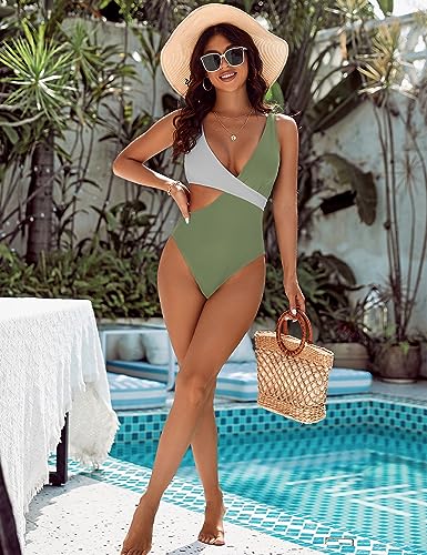 • [Side Cutout] - Sexy swimsuit for women featuring a wrap bodice with a deep v-cut neckline, an accent cut out on the side, and a flattering figure hugging silhouette that ends in cheeky fit bottoms.
