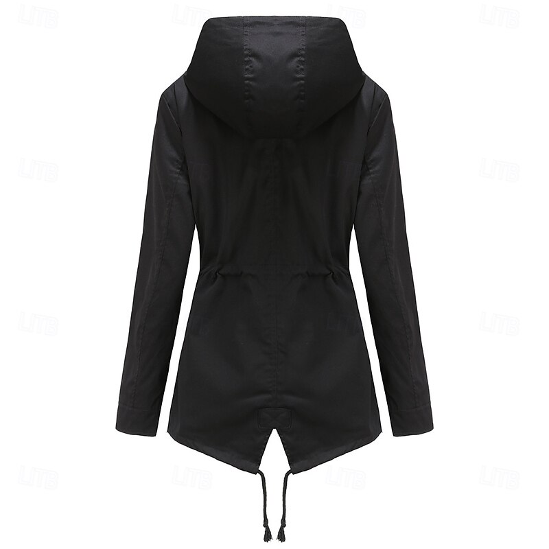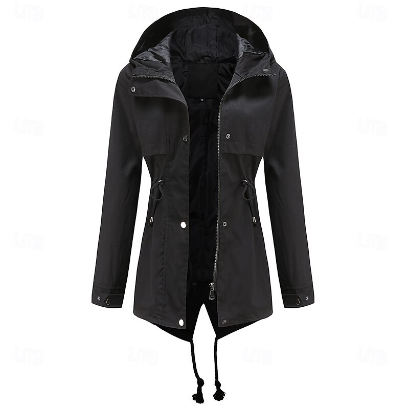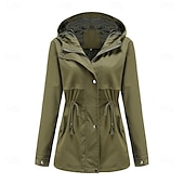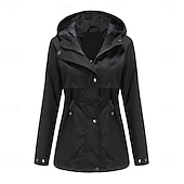 More information about Women's Coat Waterproof Comfortable Full Zip Drawstring Fashion Street Style Plain Outdoor Casual Daily Regular Hooded Regular Fit Long Sleeve Outerwear Black Yellow Burgundy Spring Fall