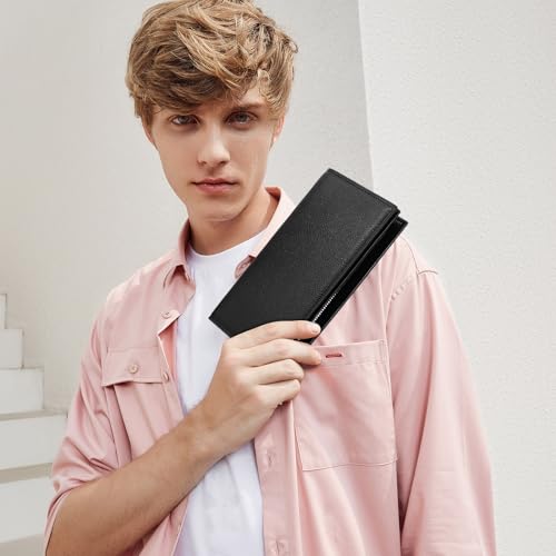 Wallet for Men, Long PU Leather Business Wallet Minimalist Credit Card Holder with Multi Slot and Zipper Pocket (Black, One Size) 6