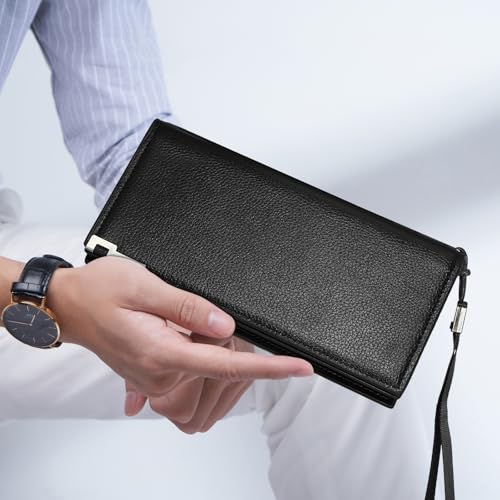 • Easy to Carry: The size of the men's card wallet is 19 x 10 x 3 cm / 7.4 x 3.93 x 1.18 in, which can accommodate your mobile phone. It also has a wrist strap for easy carrying and makes your outings easier and more convenient