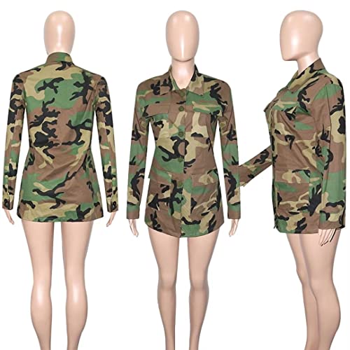 Sexy Camouflage Jacket for Women Army Fatigue Long Cargo Jackets Trench Coat Plus Size 4
