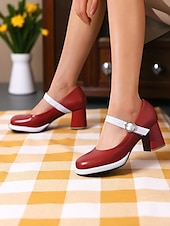 More information about Women's 1950s Mod Mary Jane Heels - Retro Blue and White Round Toe Chunky Heel Shoes with Strap for Vintage Outfits, Tea Parties or Daily Wear
