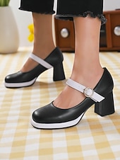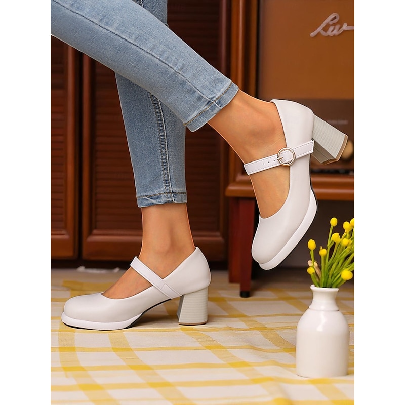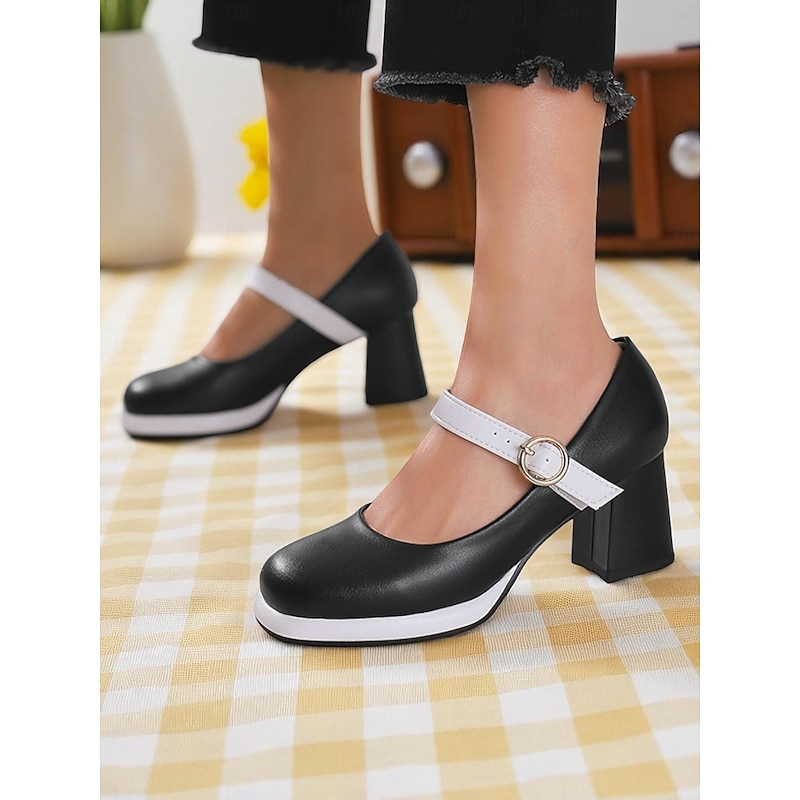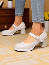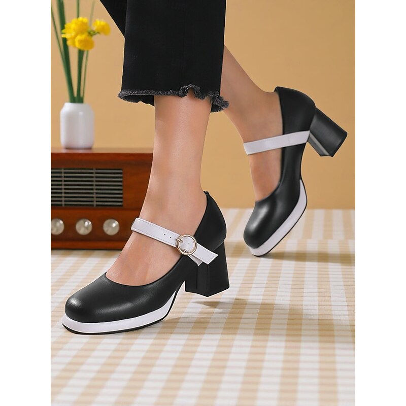 Highlights - Made with high-quality PU upper materials for durability and style - Features synthetic leather lining for comfort and a luxurious feel - adorned with a stylish buckle embellishment for added flair - Designed with a trendy chunky heel for stability and support - Rounded toe shape for a comfortable and classic look - Durable rubber outsole for traction and long-lasting wear