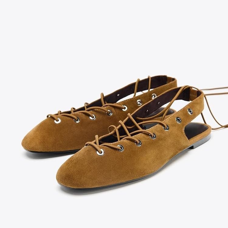 SEIFIN Slingback Flats for Women Round Toe Mary Jane Ballet Flats with Ankle Strap Lace Up Comfortable Dressy Ballerina Shoes 1