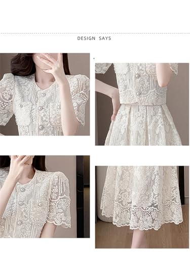 Women Embroidery Lace 2 Piece Set Beaded Flower Single Breasted Short Top A Line Midi Skirt Suits High Qu 5