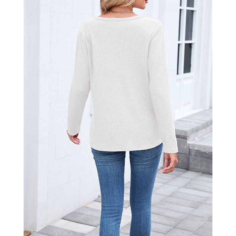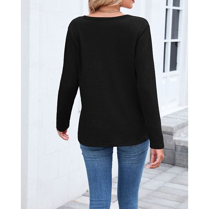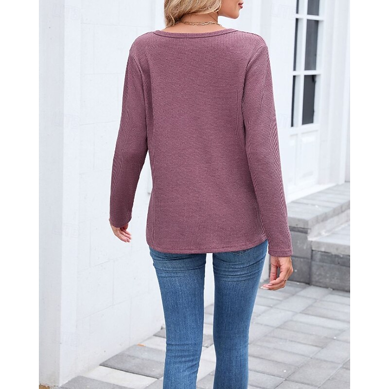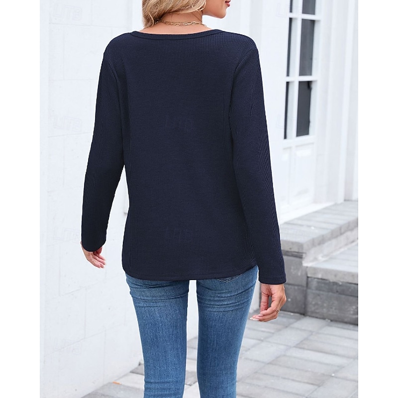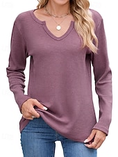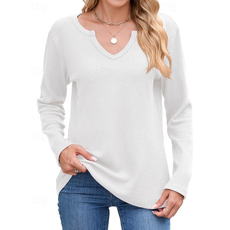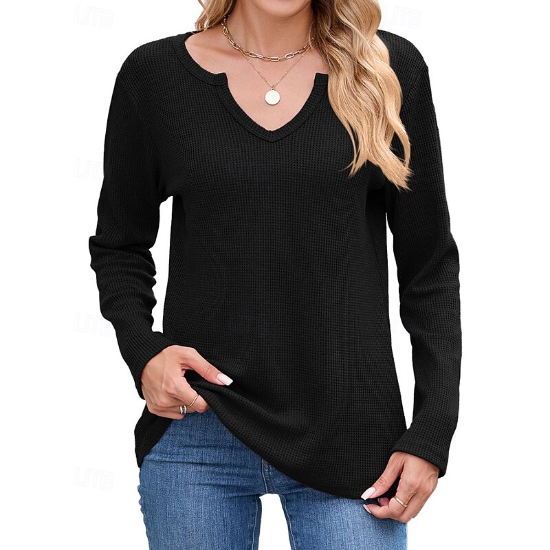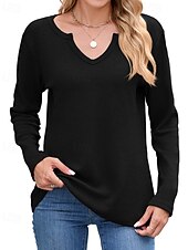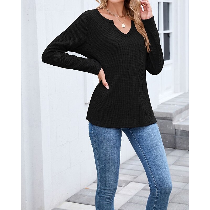 More information about Women's T Shirt Plain Casual Long Sleeve V Neck Regular Tops Daily Going out Maroon Black White Navy Blue Fall