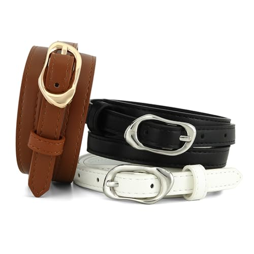 Earnda Skinny Belt for Women Jeans Faux Leather Ladies Thin Waist Belts for Dresses Pants with Vintage Gold/Silver Buckle 3