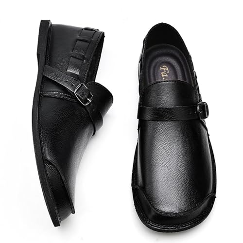 Men's Genuine Leather Monk Buckle Casual Slip-On Loafers Comfort Classic Hand-Sewn Round Head Wide Toe Oxford Walking Shoes Fashion Driving Business Dress Shoes 6
