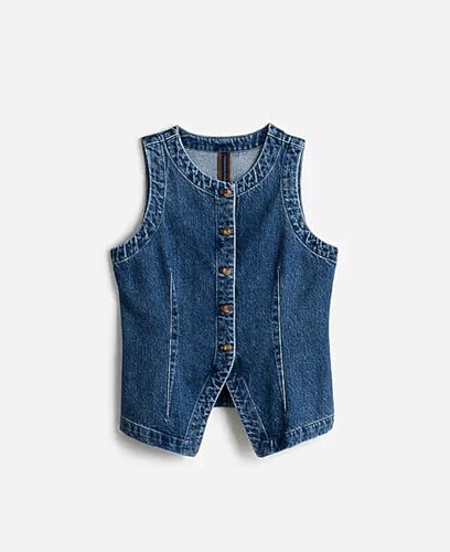 D-Sun Women Denim Vest Sleeveless Crewneck Button Down Jean Waistcoat Casual Front Slit Slim Denim Tank Top 6