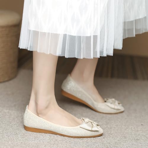 Women's Flats, Foldable Ballet Flats for Women, Fashion Bow Tie Pionted Toe Comfort Lightweight Slip-On Dress Shoes 7