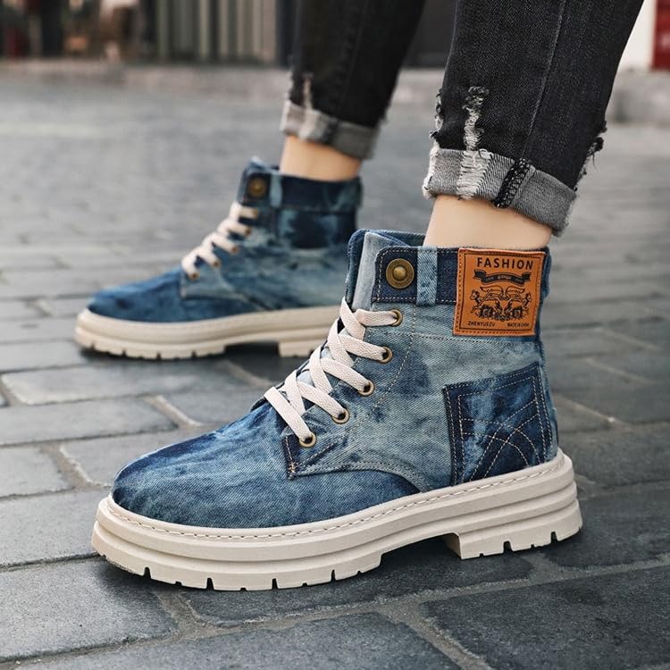 Men's High Top Denim Boots Lace up Chunky Platform Ankle Boots for Men Lug Sole Comfort Casual Retro Sneakers Shoes 7