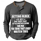 HOT ! Men's Funny Getting Older Humor Long Sleeve Henley Graphic Tee