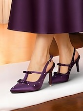 More information about Women's Purple Satin T-Strap Heels with Bows and Studs – Elegant Slingback Cocktail Party Shoes for Sophisticated Evenings