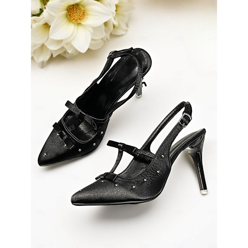 Highlights - Luxurious satin upper material - Elegant synthetic leather lining - Sparkling rhinestone embellishment - Classy pointed toe shape - Durable rubber outsole for long-lasting wear