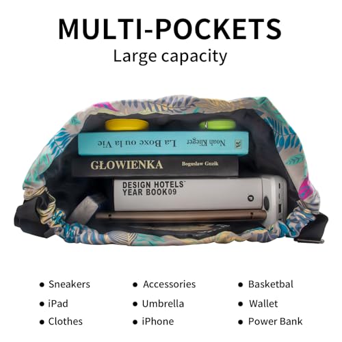 More information about Peicees Pack of 2 Waterproof Drawstring Sport Bags Lightweight Sackpack Backpack for Men and Women, Sea Wave and Gray Leaves