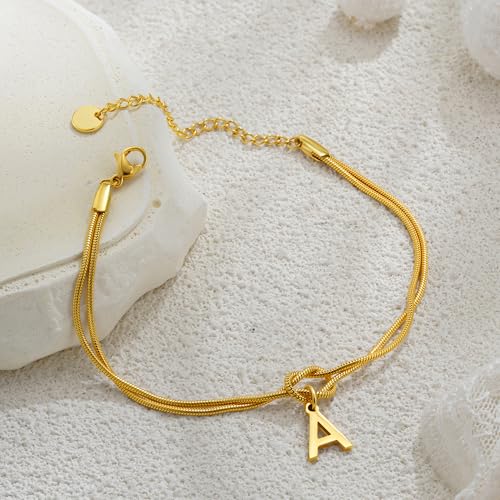 Gold Initial Bracelets for Women Girls - 18K Gold Plated Knot Initial Bracelet Teen Girl Gifts Trendy Stuff Dainty Gold Bracelets for Women Girls Jewelry Gifts 3