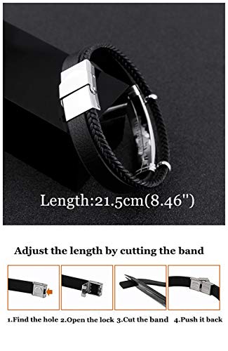 • 1.MATERIAL: Durable Stainless Stee + Braided Wrap Leather ,Length:21.5 cm(8.46''),Length can be Adjusted by Opening the Buckle and Cut the Band ,One Fit Most,Comfort Fit.