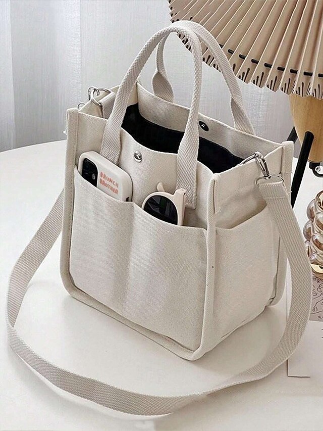 Women's Casual Canvas One Shoulder Handbag Crossbody Bag with Adjustable Shoulder Strap - Multi-Pocket Mini Tote Bag for Daily School and Shopping 12