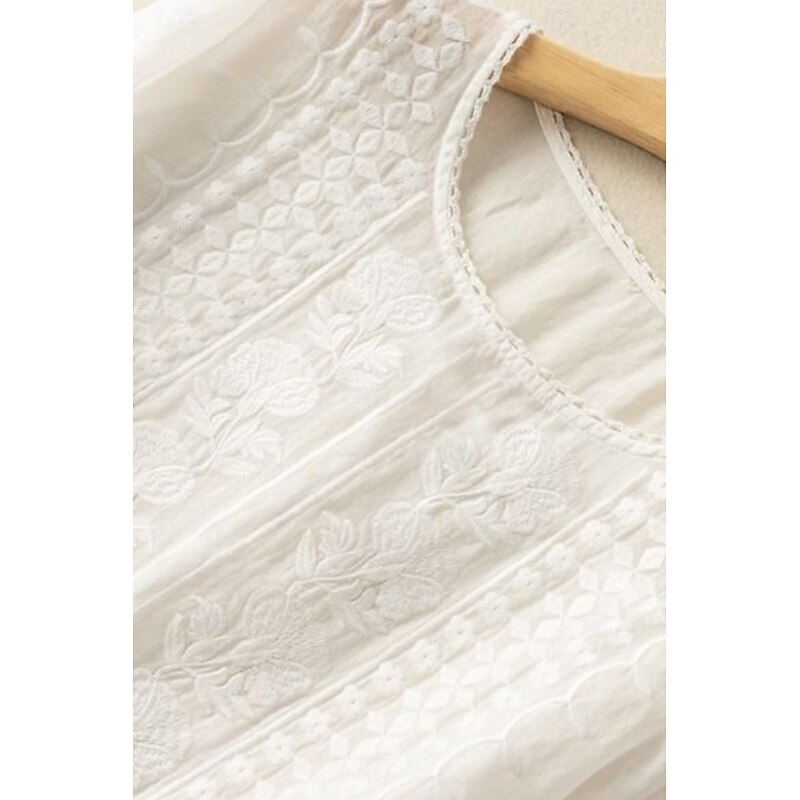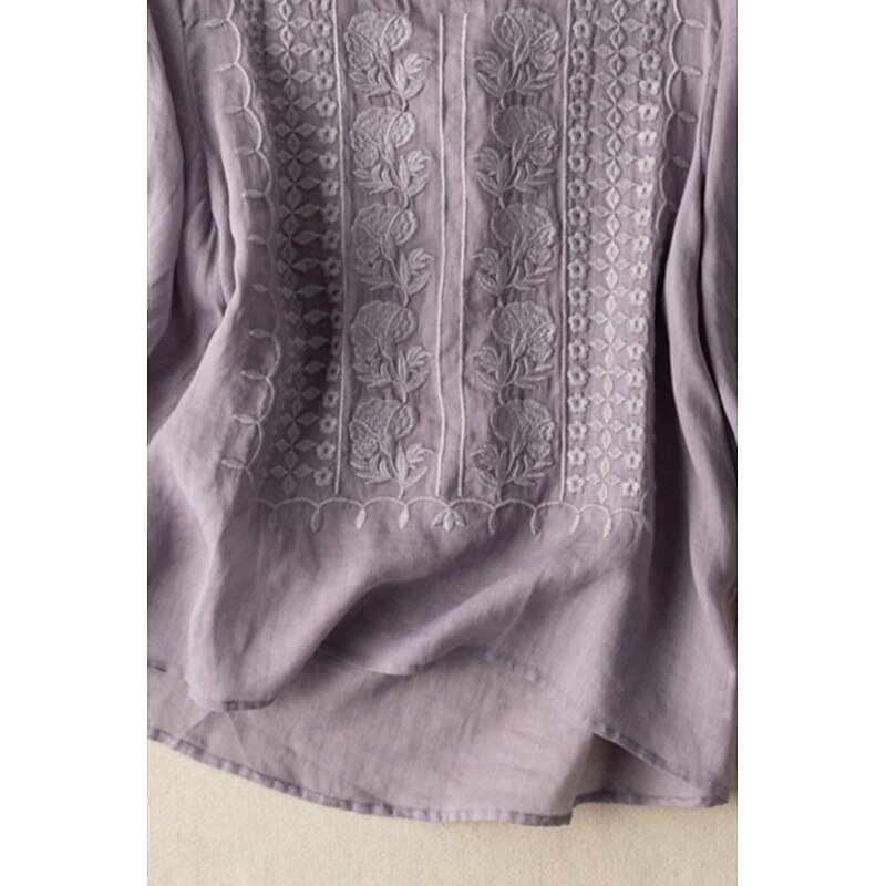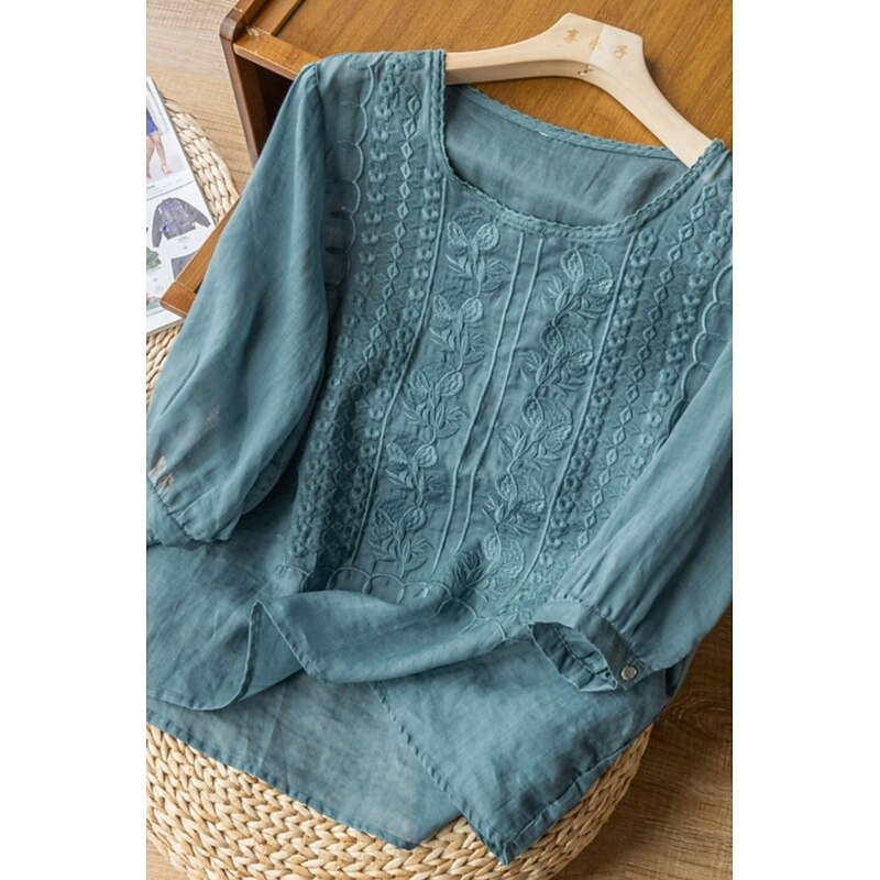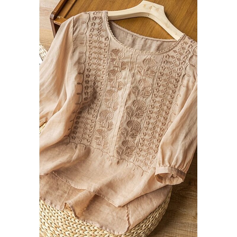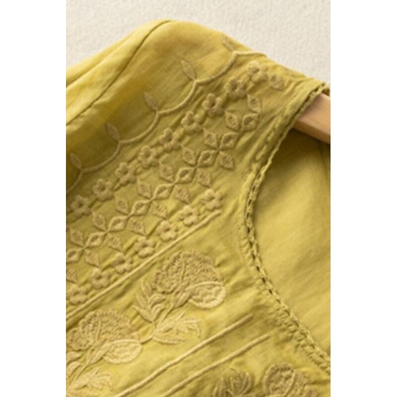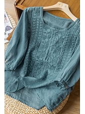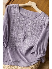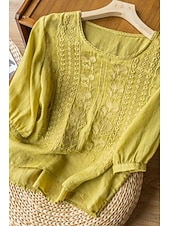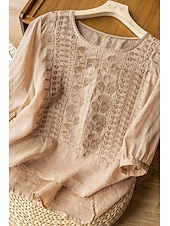 More information about Women's Shirt Linen Shirt Blouse Cotton Linen Shirts Plain Modern Half Sleeve Crew Neck Regular Tops Daily Holiday Going out Mesh White Yellow Blue Purple Khaki Summer