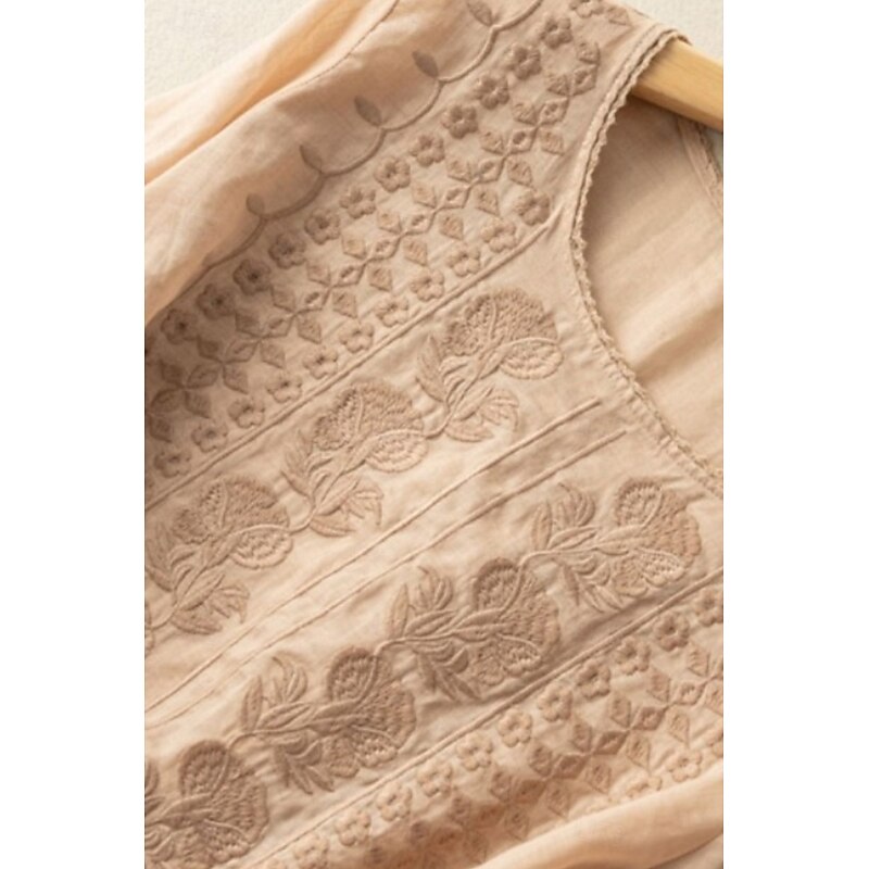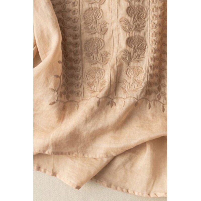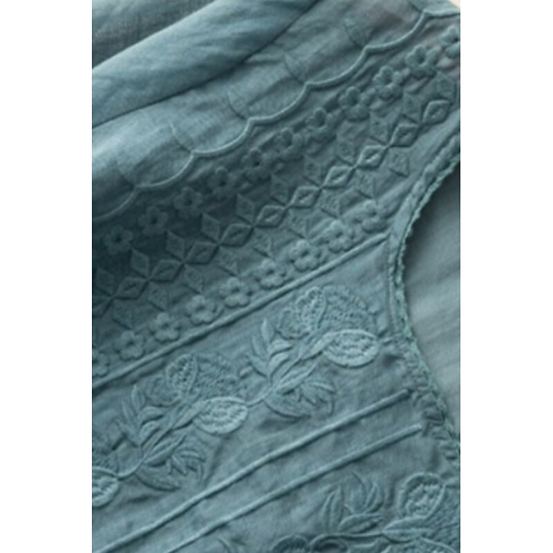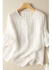 Highlights - Stay cool and comfortable all summer long with this stylish linen shirt. - Perfect for daily wear, this mesh design adds a modern touch to your outfit. - The classic crew neck neckline makes this top a versatile addition to your wardrobe.