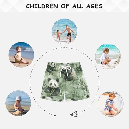 Pigsaly Boys' Swim Board Shorts Cute Watercolor Black White Pandas Green Plants Boy's Swim Trunks Kids Swimwear 5T 3