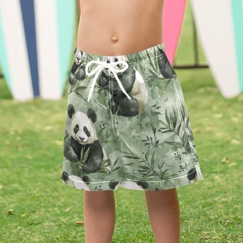 Pigsaly Boys' Swim Board Shorts Cute Watercolor Black White Pandas Green Plants Boy's Swim Trunks Kids Swimwear 5T 6