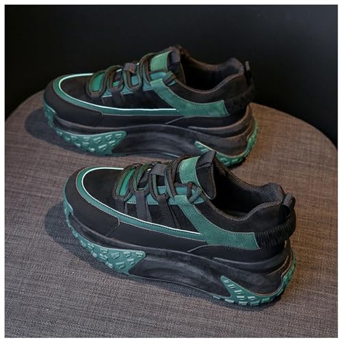 HOT ! Women's Leather Platform Fashion Sneakers Comfortable Low Top Wedgel Heel Lace Up Dad Shoes Lug Sole Breathable Casual Running Shoes