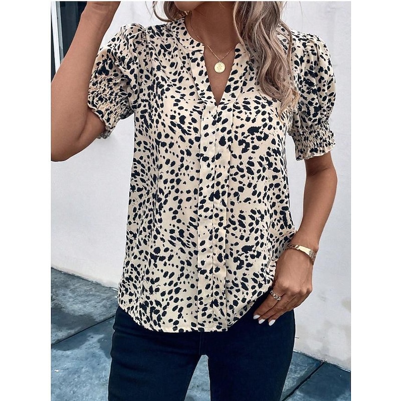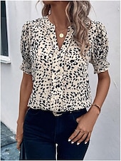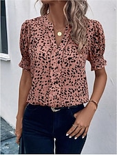 More information about Women's Shirt Blouse Casual Polka Dot Print Short Sleeve Regular Tops V Neck Daily Pink Blue Beige Summer