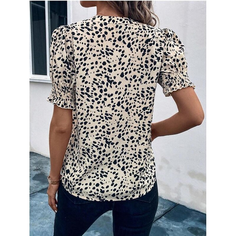 Women's Shirt Blouse Casual Polka Dot Print Short Sleeve Regular Tops V Neck Daily Pink Blue Beige Summer 1