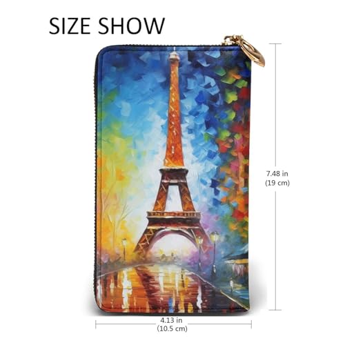 More information about paris eiffel tower painting Wallet for Men Women Long Purse Leather Clutch Large Business Handbag Travel Phone Holder Credit Card Holder Money Case with Zipper Leather Wallets Gift