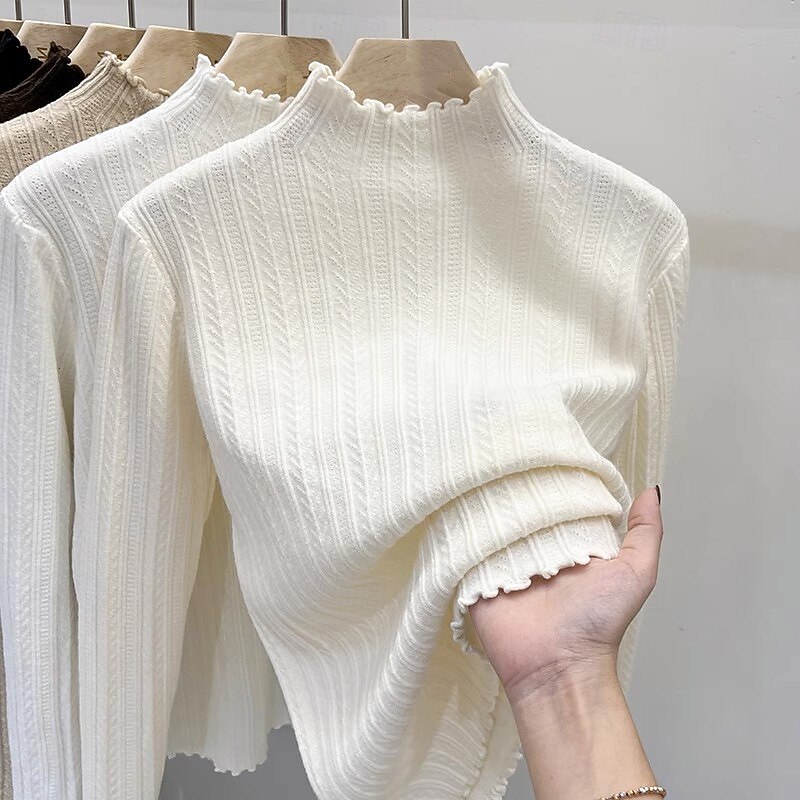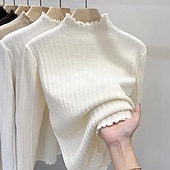 More information about Women's Sweater Pullover Streetwear Casual Solid Color Stand Collar Knitted Long Sleeve Regular Tops Knit Daily Holiday Weekend Black White Fall Winter