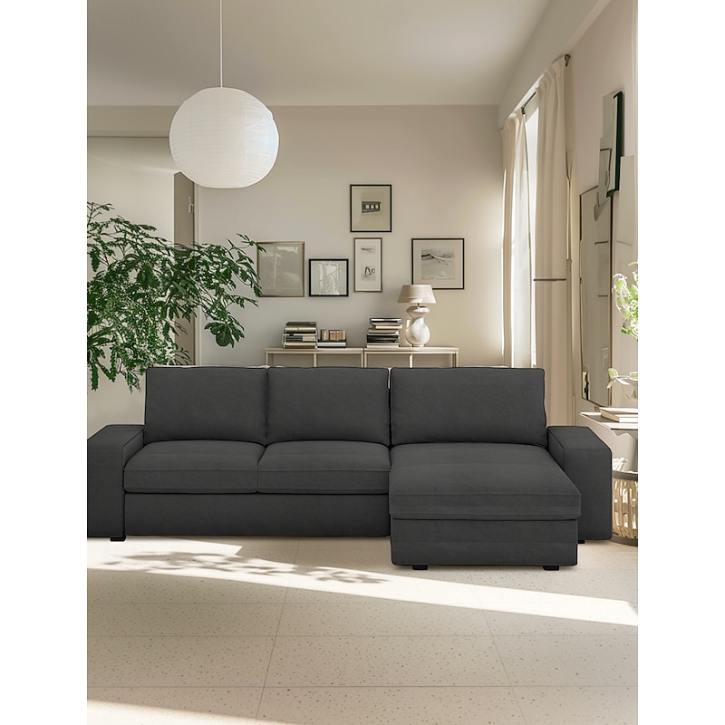More information about 100% Cotton 3 Seater 4 Seater Sofa Cover with Armrests Solid Color Quilted Cotton Slipcovers KIVcover LITB PRIME cover
