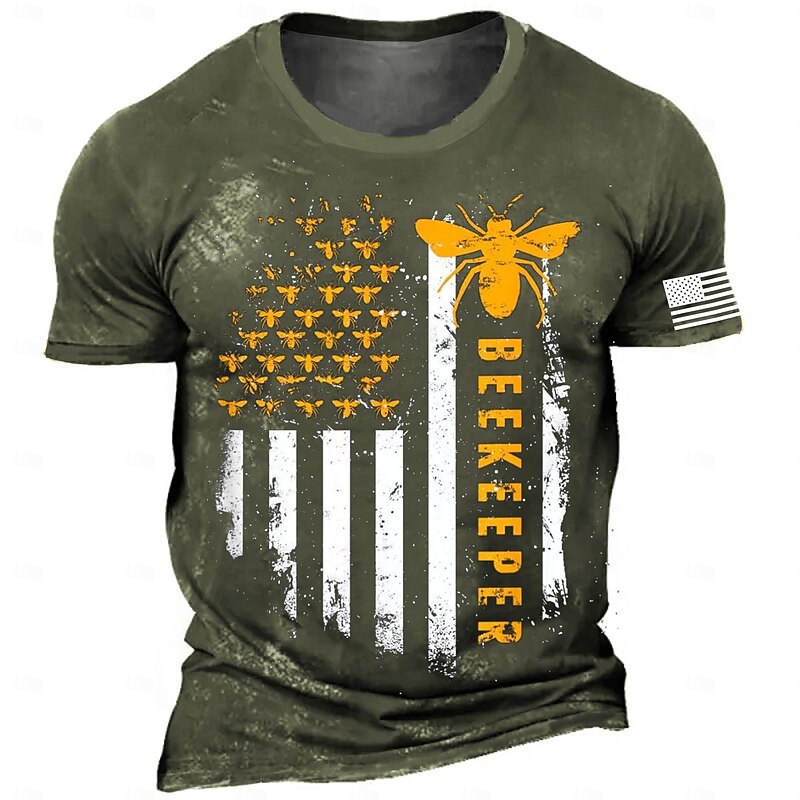 More information about Veterans Day Men's Patriot Patriotic Veteran Bee American US Flag Slogan T shirt Short Sleeve T shirt 3D Print Crew Neck Shirt Retro Vintage Casual Street Style Sports Outdoor Holiday Going out