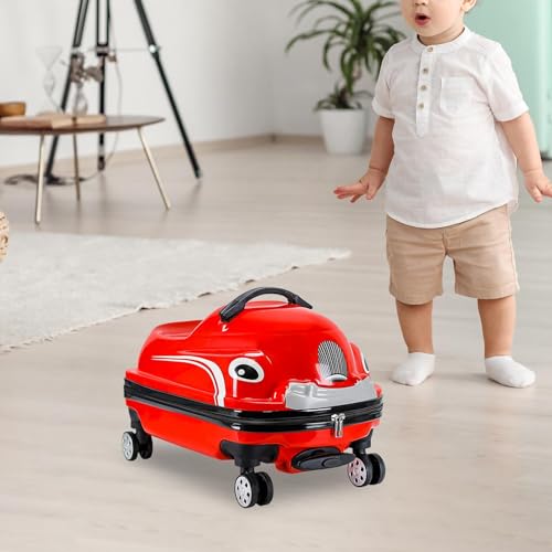 HOT ! Kids' 20" Travel Suitcase with Fun Vehicle Theme, Rolling Luggage, Red