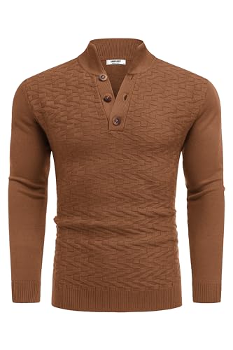 COOFANDY Men Mock Neck Button Sweater Casual Knitted Sweaters Fashion Henley Sweater 6
